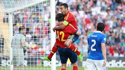 ولم تواجه إسبانيا المدافعة عن اللقب صعوبة تذكر في اقتحام دفاع إيطاليا وافتتح الكنتارا التسجيل بضربة رأس في الدقيقة السادسة.